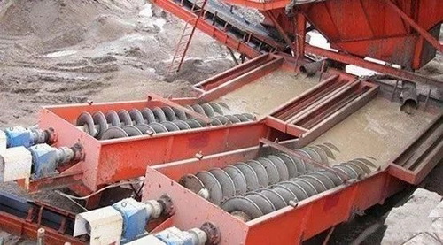 如果主要是清洗粘在砂石塊上的粘土,則料石在破碎到細(xì)粉之前必須采用碎石或巖石清洗機(jī)將粘在石塊上的粘土刮去,這樣才能保證后續(xù)破碎篩分后的砂石質(zhì)量。這種設(shè)備通常設(shè)置在振動(dòng)篩之前,先清洗后篩分。